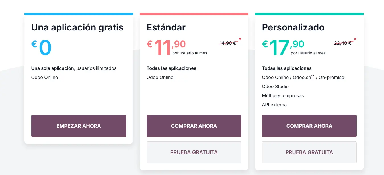 Odoo Enterprise es la versión con licencia de Odoo, comparte el mismo núcleo de código que su versión libre, pero para usarla tendrás que pagar por usuario y por aplicación.
