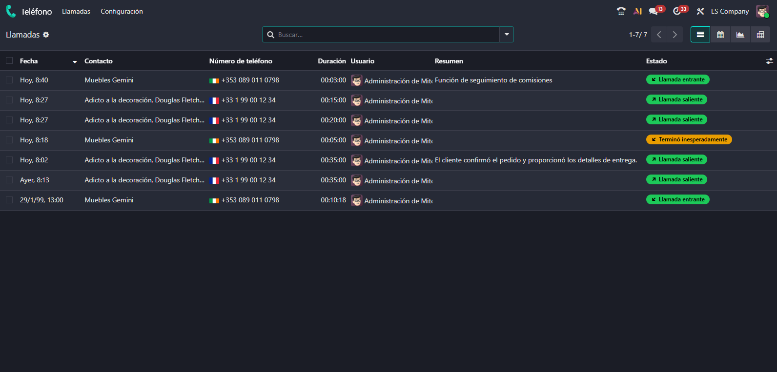 De este modo, tu equipo puede gestionar llamadas, clientes y oportunidades sin salir del entorno Odoo.