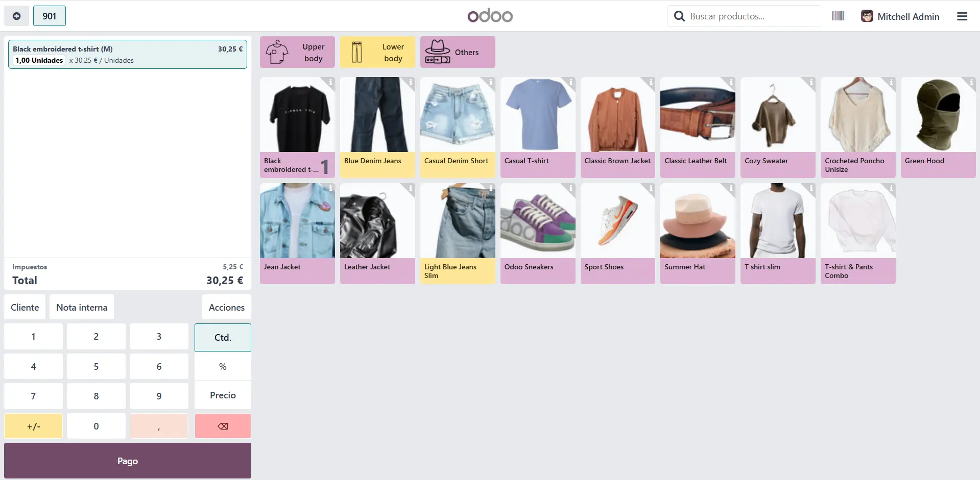 Odoo TPV soporta pagos en efectivo, tarjeta, cheques, vales y cupones. También se integra con terminales de pago electrónico (datáfonos) y sistemas de pago online como Stripe o Adyen.